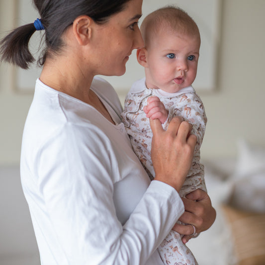 Peruvian Pima cotton is renowned for its incredible softness and strength. This luxurious, silky fabric provides the perfect balance of warmth for cozy naps and breathability for active play. Often called the cashmere of cotton, we believe it embodies the essence of ultimate comfort for you and your little one!