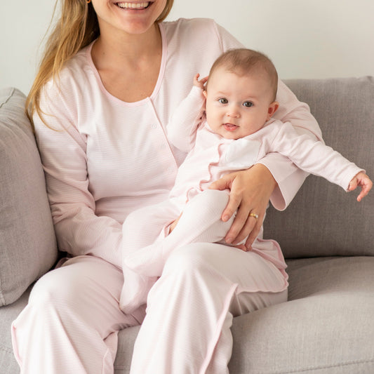 Mom and me Nursing PJ and Footie Pima Gift Set Pink stripes