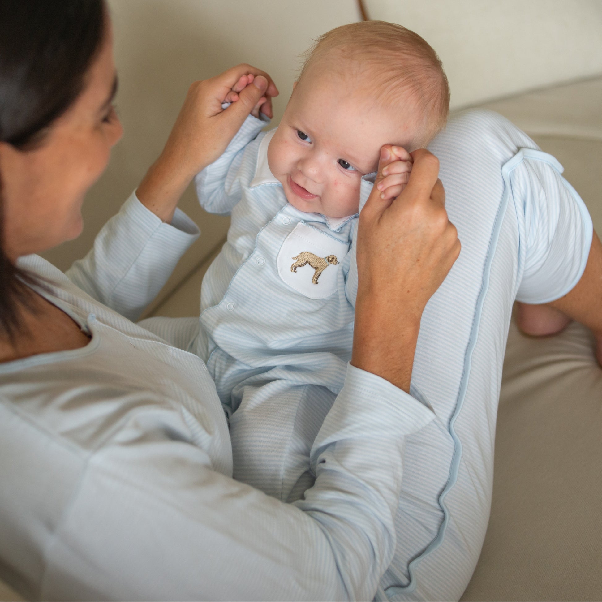 Mom and me Nursing PJ and Footie Pima Gift Set Pet Lover blue stripes